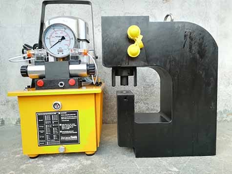 CH-100H electric motor hydraulic pump operated hole punching machine, for punching in channel steel, angle iron, I beams, and mild flat steel plates.